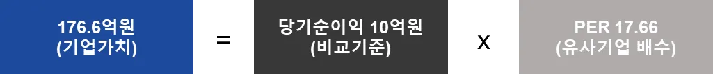 사례에서는 당기순이익을 이용하였지만, 영업이익, EBITDA, 매출 등 보다 목적 적합한 비교기준을 이용해도 됩니다. 이익이나 매출이 발생하지 않는 초기스타트업이라면, MAU등 비재무적지표를 이용하는것도 대안입니다.